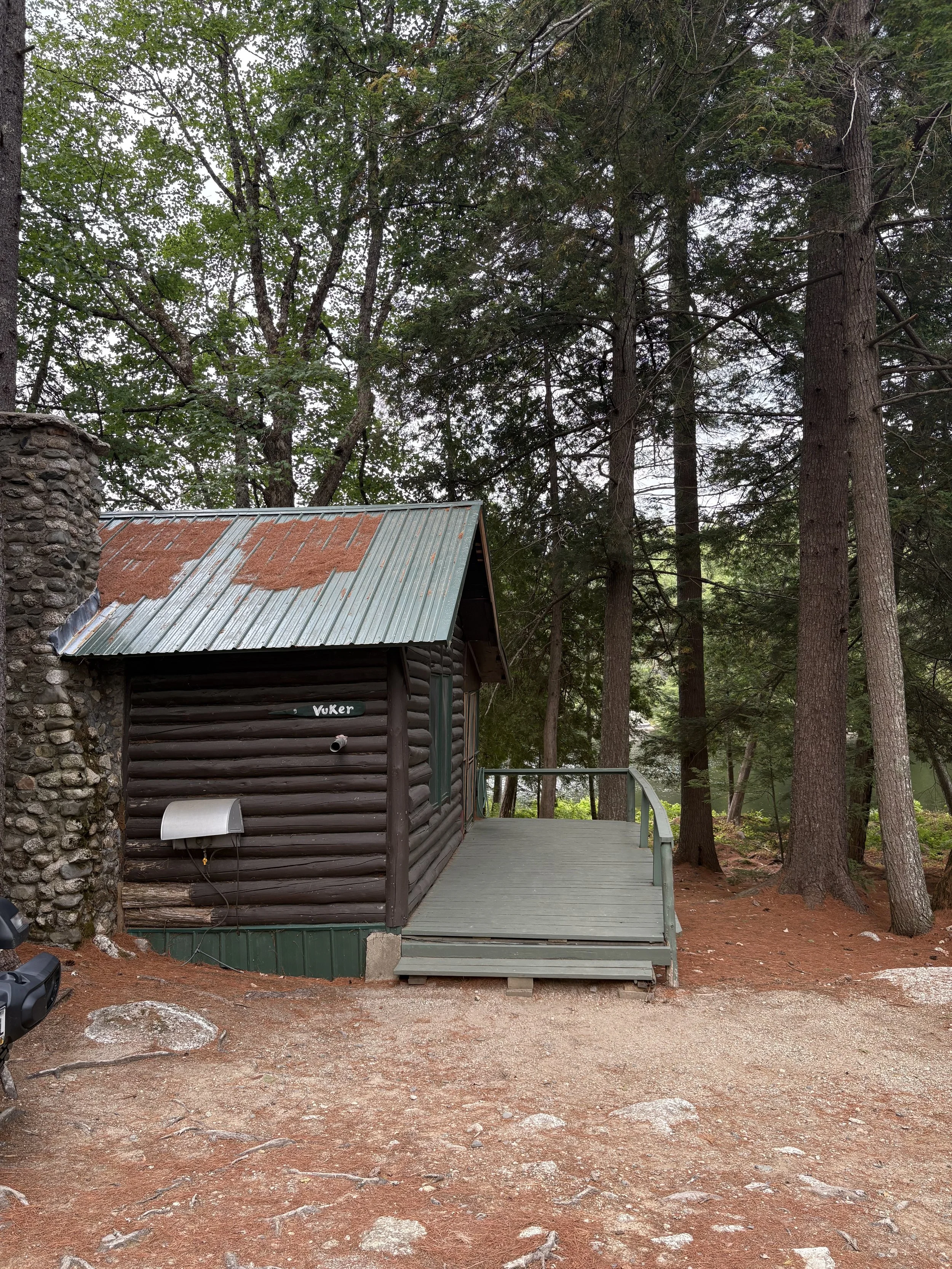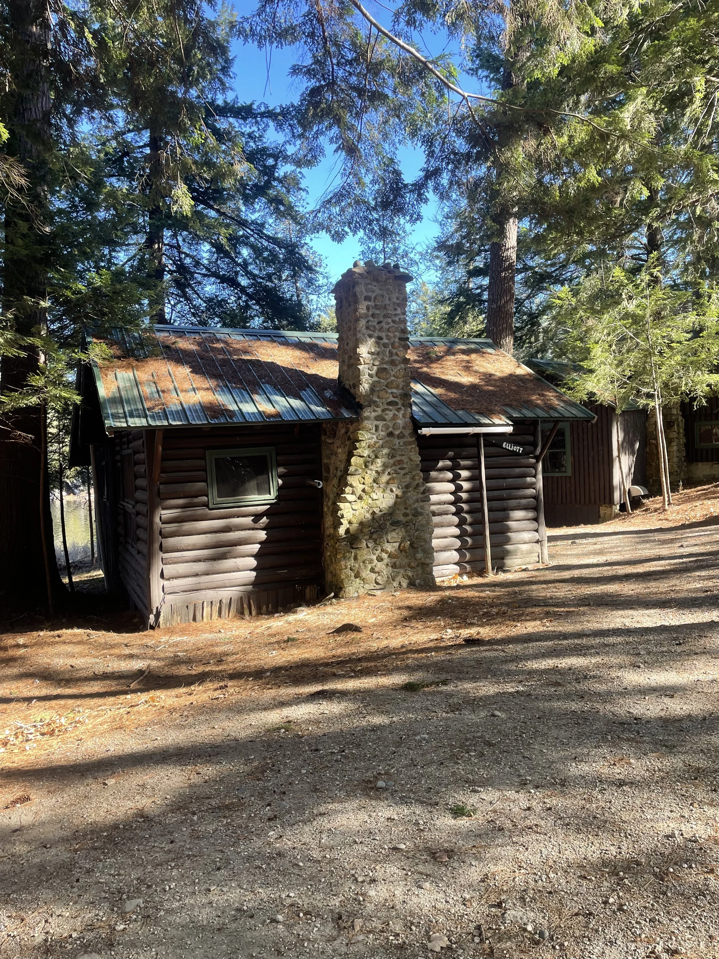 Vuker is a roomy two bedroom cabin with one set of bunk beds and a full bed. This cabin has a little kitchen, screened in porch, and fireplace.
